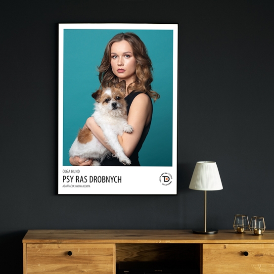 Plakat pochodzi ze spektaklu „Psy ras drobnych”.